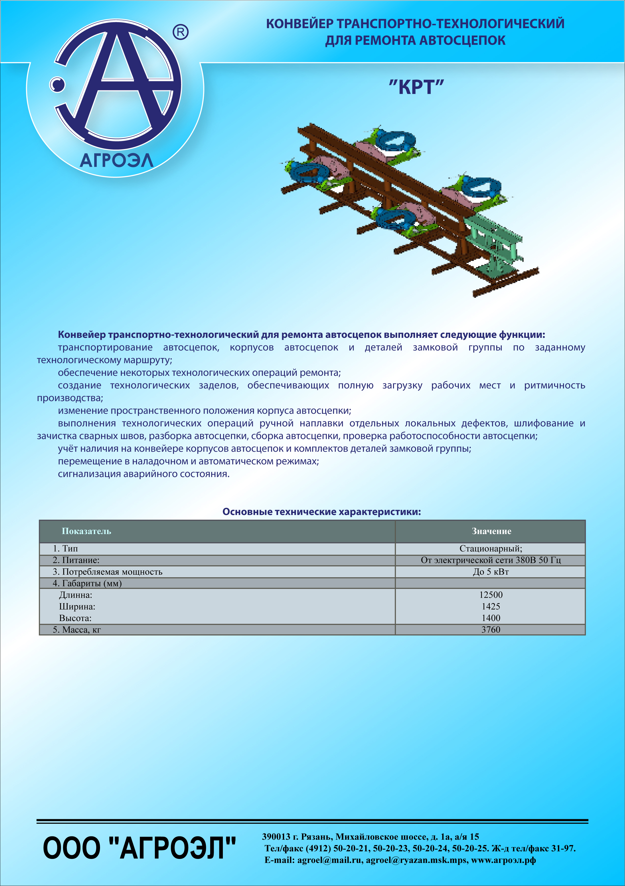 | Конвейер транспортно-технологический для ремонта автосцепок выполняет следующие функции: - транспортирование автосцепок, корпусов автосцепок и деталей замковой группы по заданному технологическому маршруту; - обеспечение некоторых технологических операций ремонта; - создание технологических заделов, обеспечивающих полную загрузку рабочих мест и ритмичность производства; - изменение пространственного положения корпуса автосцепки; - выполнения технологических операций ручной наплавки отдельных локальных дефектов, шлифование и зачистка сварных швов, разборка автосцепки, сборка автосцепки, проверка работоспособности автосцепки; - учёт наличия на конвейере корпусов автосцепок и комплектов деталей замковой группы; - перемещение в наладочном и автоматическом режимах; - сигнализация аварийного состояния. |