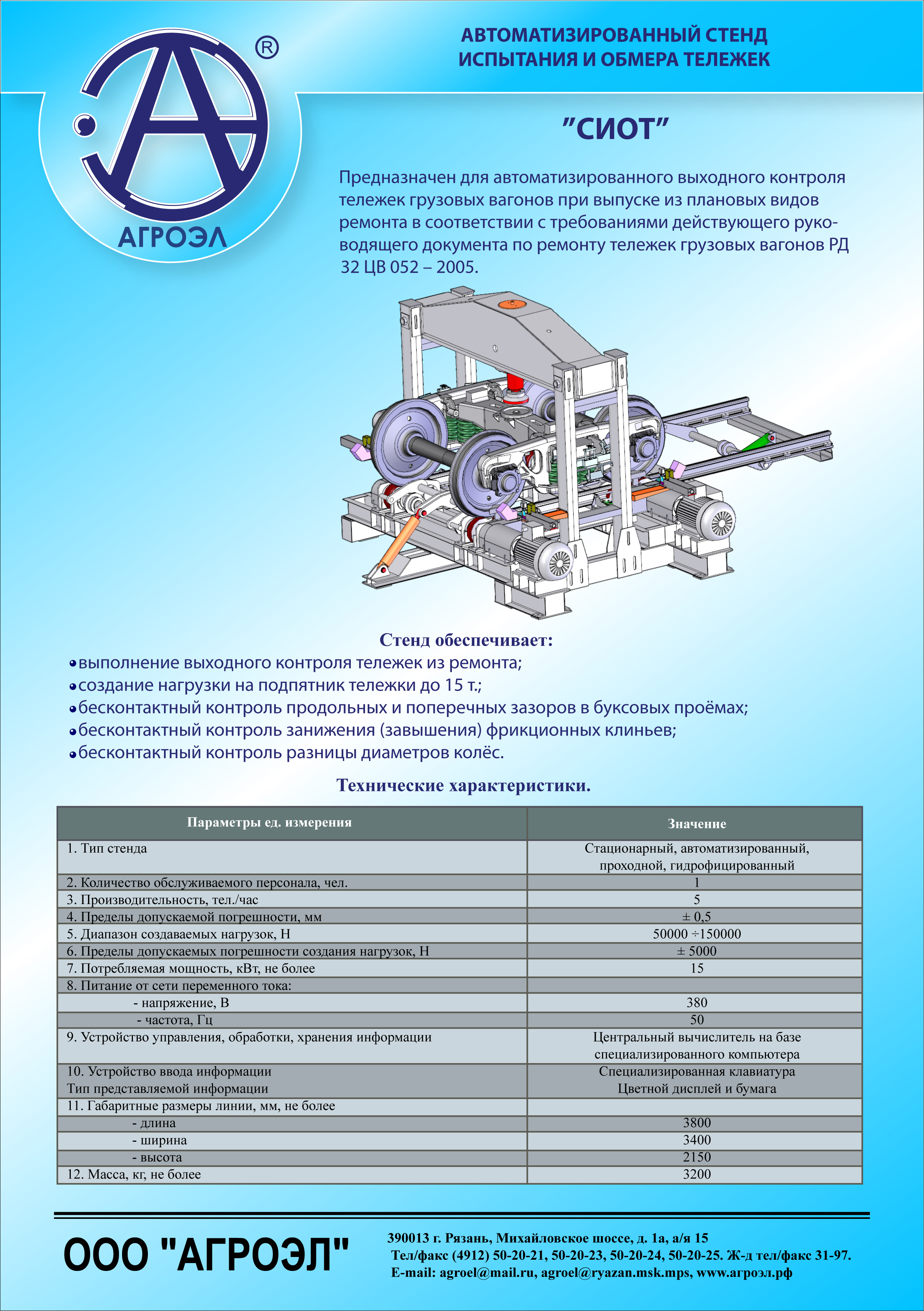 Предназначен для автоматизированного выходного контроля тележек грузовых вагонов при выпуске из плановых видов ремонта в соответствии с требованиями действующего руководящего документа по ремонту тележек грузовых вагонов РД 32 ЦВ 052 – 2005.