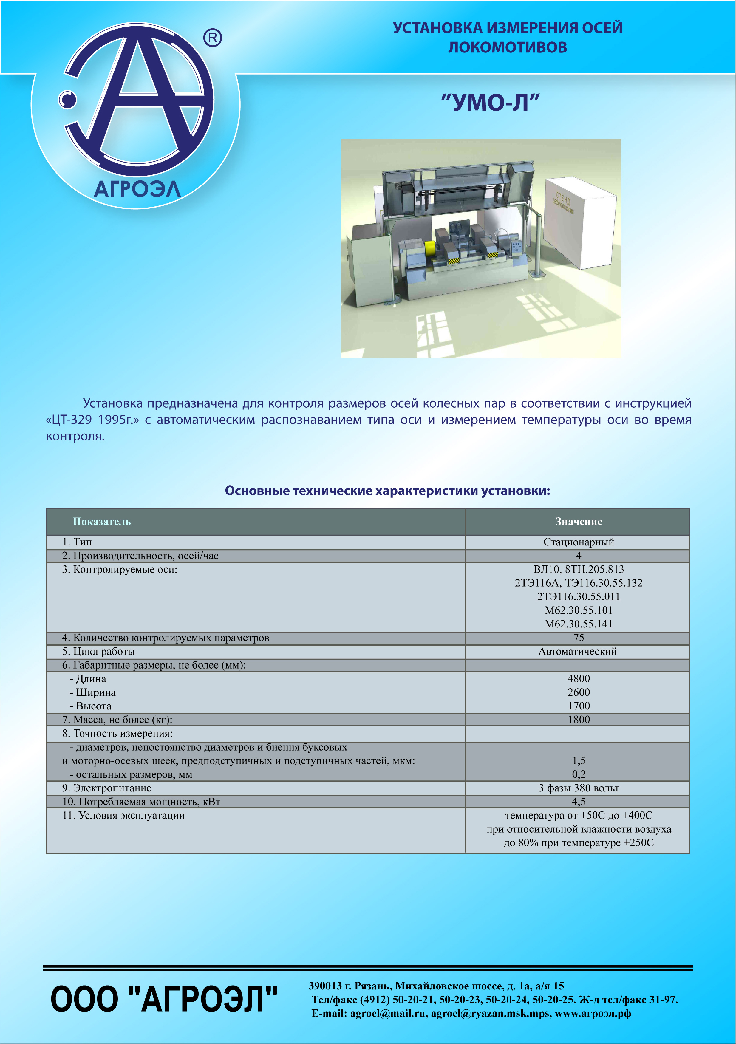 | Установка предназначена для контроля размеров осей колесных пар в соответствии с инструкцией «ЦТ-329 1995г.» с автоматическим распознаванием типа оси и измерением температуры оси во время контроля. | ![]() |